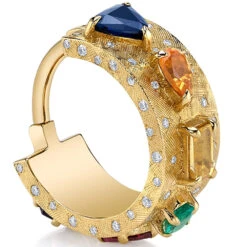 “Tenaya” Hinge Ring In Gold With Oregon Sunstone & Mint Beryl