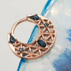 “Colombo” Navel Curve In Gold With Rainbow Moonstone & Amethyst