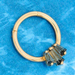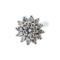 “Mininova” Threaded End In Gold With Swiss Blue Topaz’ & White CZ’s Surrounding An Amethyst