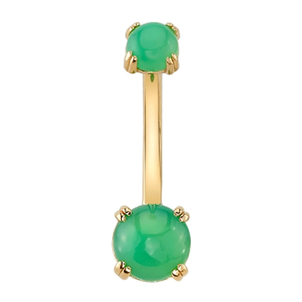 Show off the beauty of Chrysoprase’s green coloration with this Prong-Set Navel Curve!