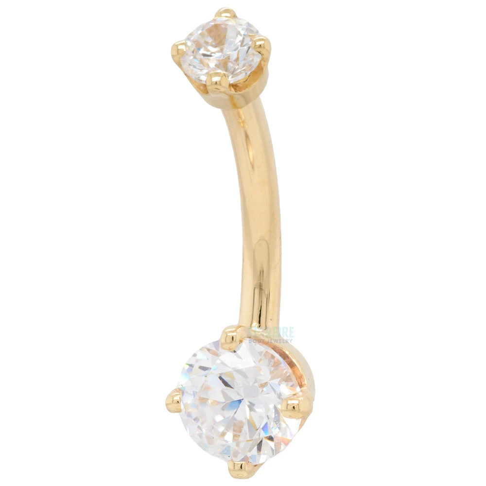 The classic low profile closed back prong setting is always in for golden navel curves.