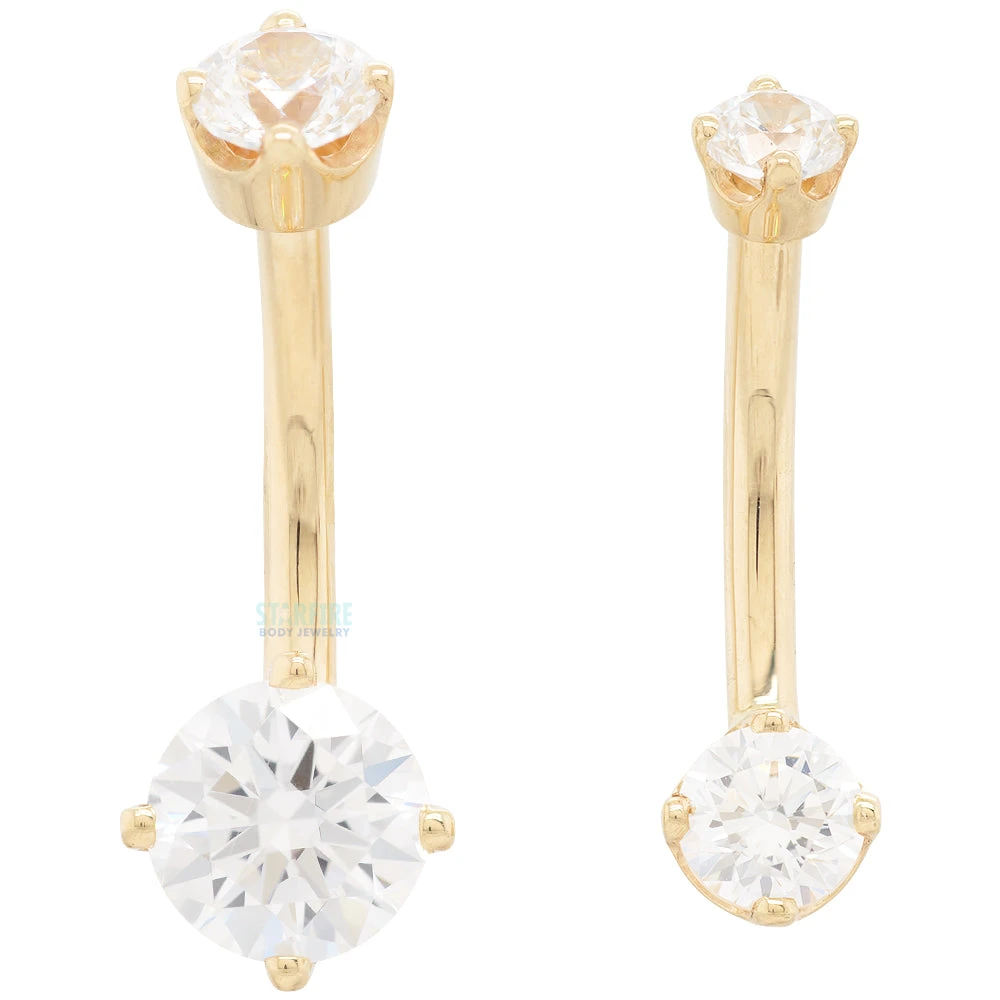 - fixed bottom with (1) 6mm Round White Diamond and a matching threaded top with (1) 4mm Round White Diamond in Prong’s