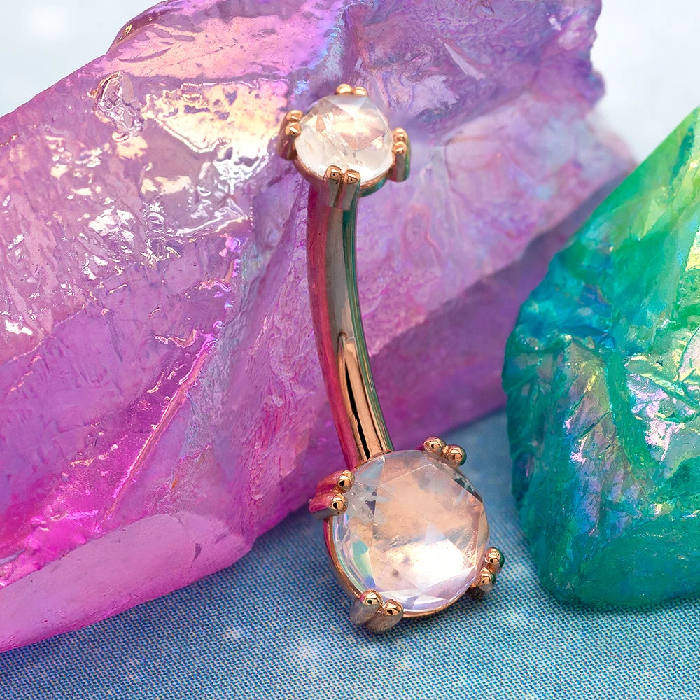 Show off the beauty of Rainbow Moonstone’s iridescent coloration with this Prong-Set Navel Curve!