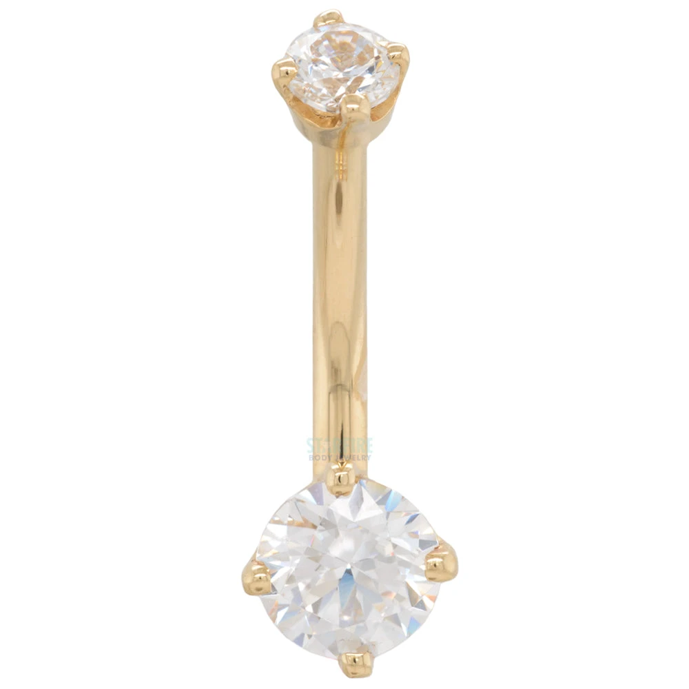 - fixed bottom with (1) 6mm Round White CZ and a matching threaded top with (1) 4mm Round White CZ in Prong’s