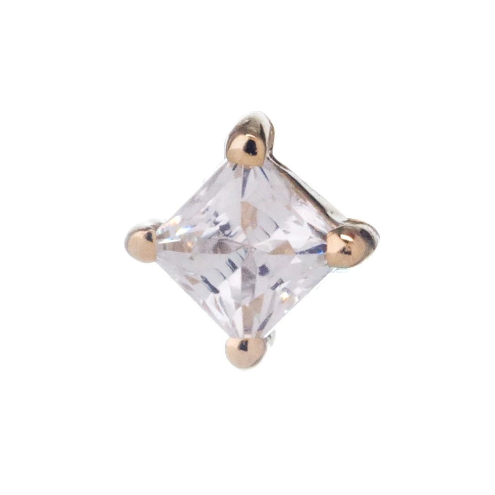- 4mm Princess-Cut White CZ in Prong’s threaded end