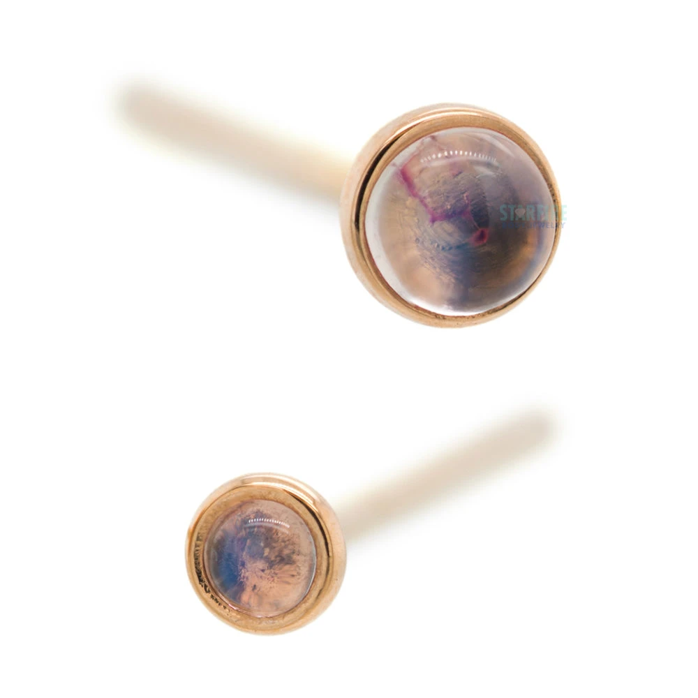 - 2mm Round Rainbow Moonstone in Bezel
