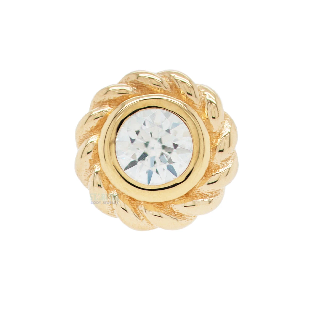 - 5.5mm end with (1) 2.5mm Round White CZ in Bezel