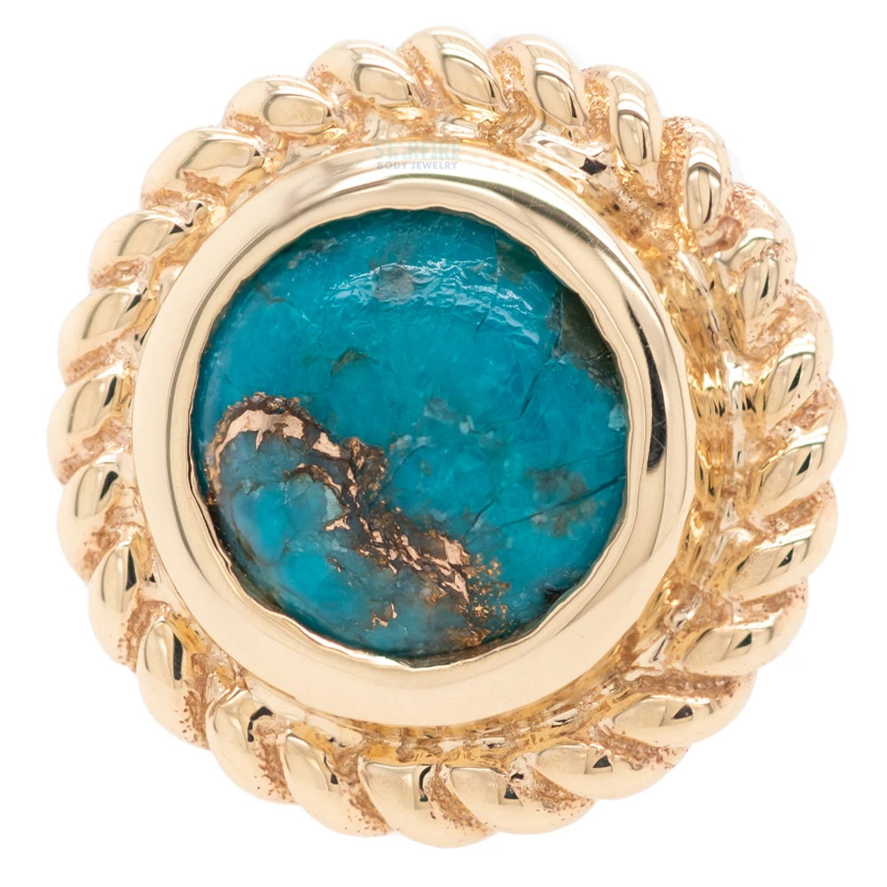 - 10.5mm threaded end with (1) 6mm Round Copper Blue Turquoise in Bezel