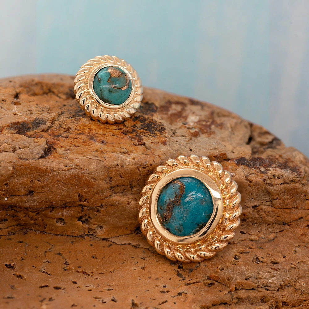 - Material(s): 14K Gold, Copper Blue Turquoise