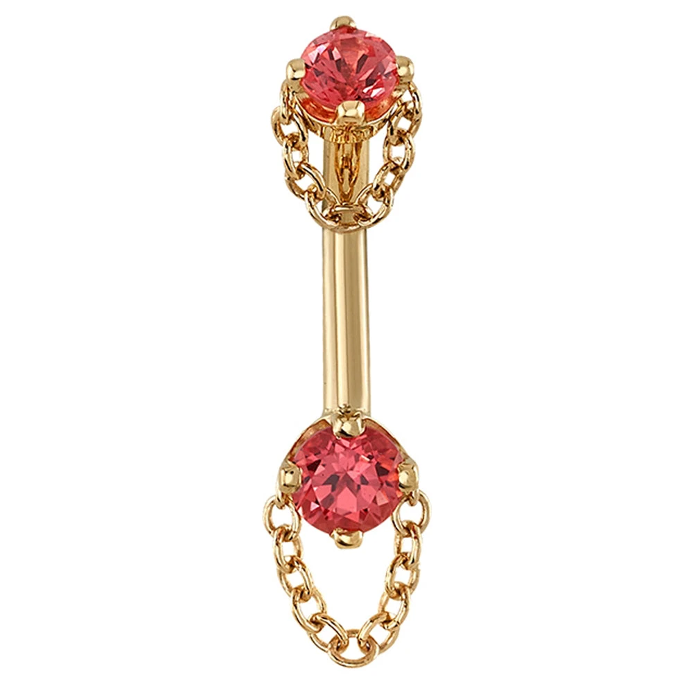 Bring a bit of allure to your rook with this “Rianna” curved barbell! Featuring dazzling Padparadscha Sapphire and adorned with golden chains.