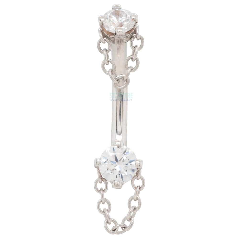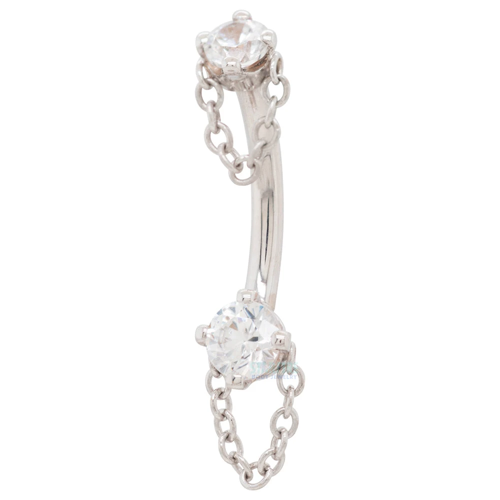 Bring a bit of allure to your rook with this “Rianna” curved barbell! Featuring dazzling White CZ’s and adorned with golden chains.