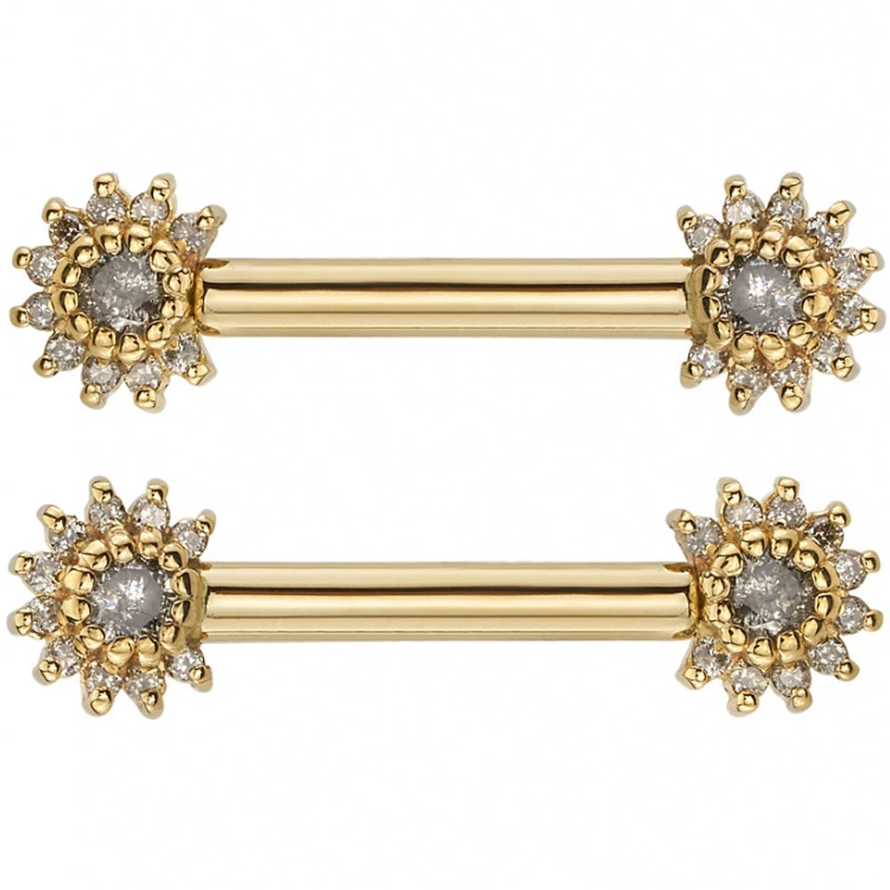Give your nipple jewelry a timeless and sparkling upgrade with these classic Grey Diamond roses.