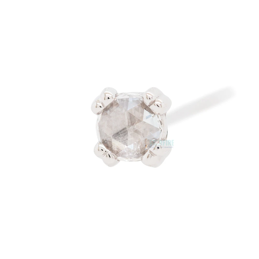 - (1) 4mm Round Rose Cut Genuine White Diamond in Prong’s