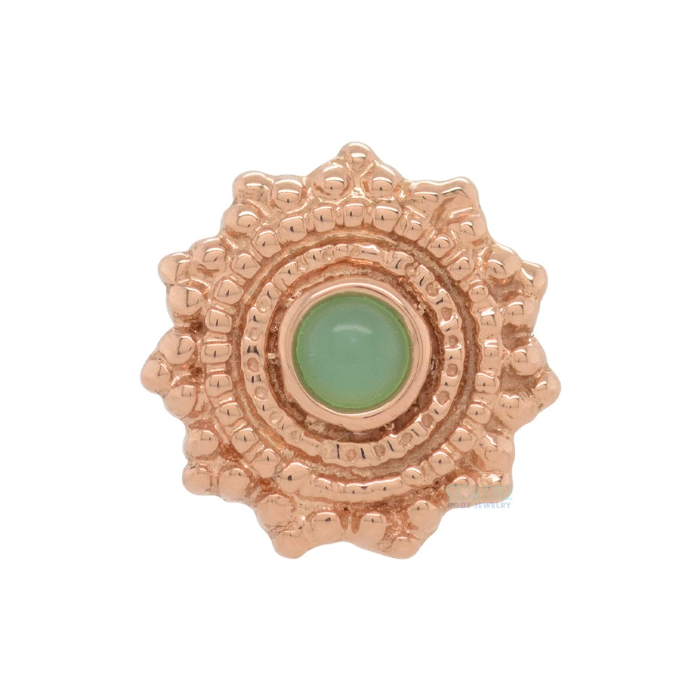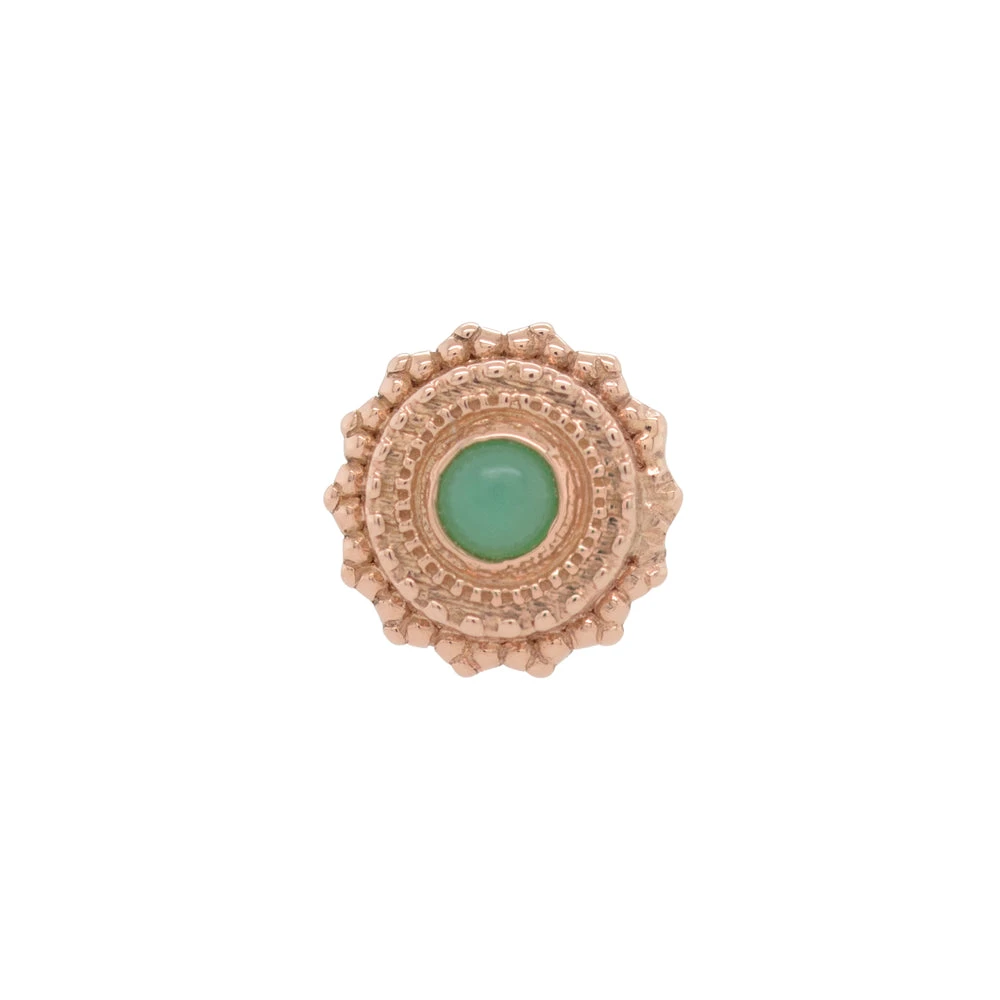 - 4mm end with (1) 1.25mm Round Chrysoprase in Bezel