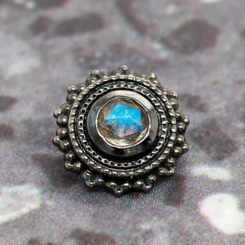 - 9mm threaded end with (1) 4mm Rose Cut Labradorite in Bezel