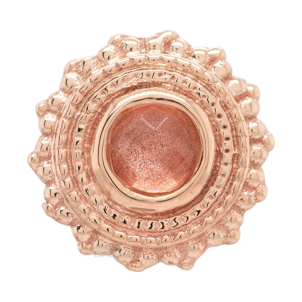 - 12mm threaded end with (1) 4mm Round Rose Cut Oregon Sunstone in Bezel