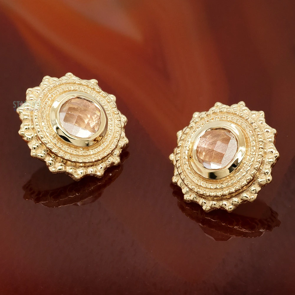 - 8mm threaded end with (1) 3mm Round Rose Cut Oregon Sunstone in Bezel