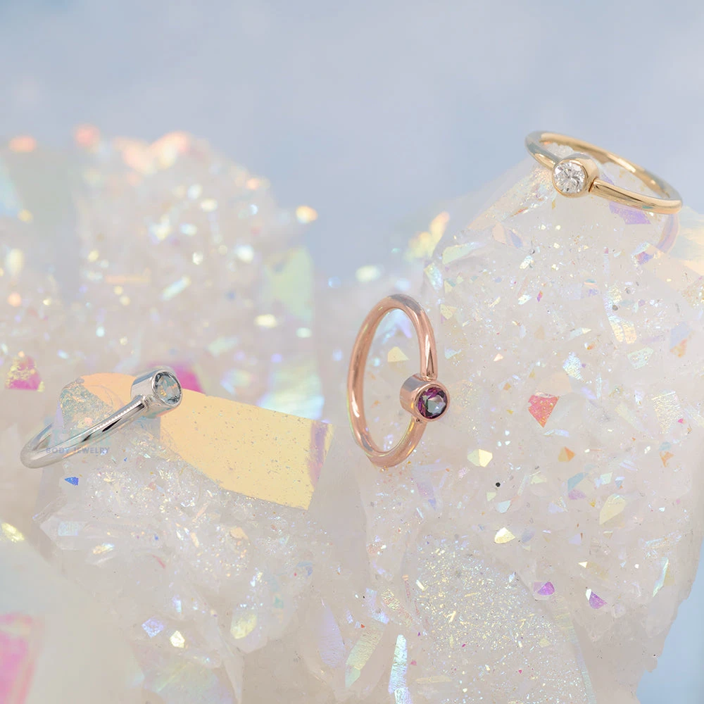 Minimalist but chic, this Round Fixed Bezel Seam Ring is nothing short of style. It features a single Oregon Sunstone encased in a bezel cup setting.