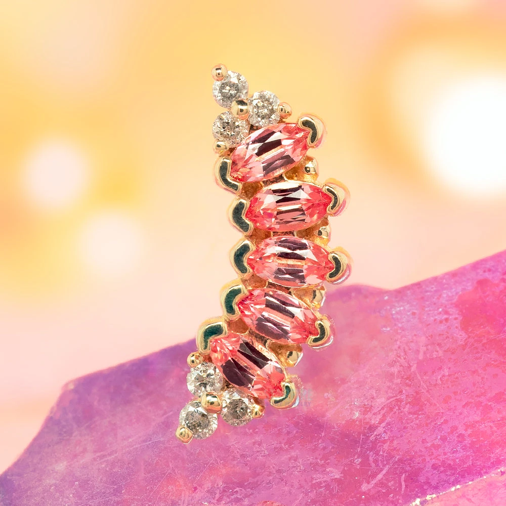 “Serena” Threaded End In Gold With Padparadscha Sapphire & Grey Diamonds