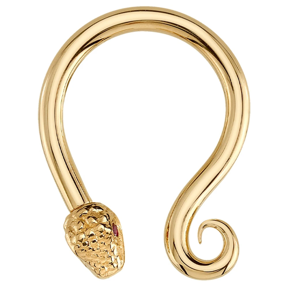 Give your septum a badass upgrade with this fierce serpent boasting a curly tail, detailed removeable head and captivating Ruby eyes.
