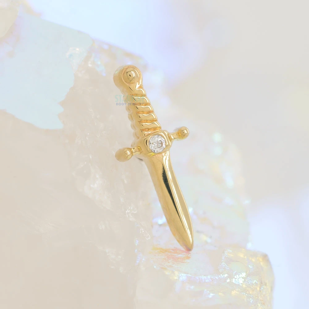 - 9mm separate threaded end with (1) 0.8mm Round White CZ in a Bezel Hilt