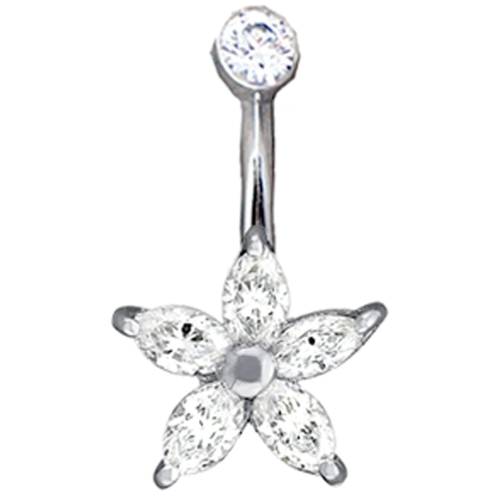 Catch the light and turn heads with this navel curve featuring a beautiful starflower design!