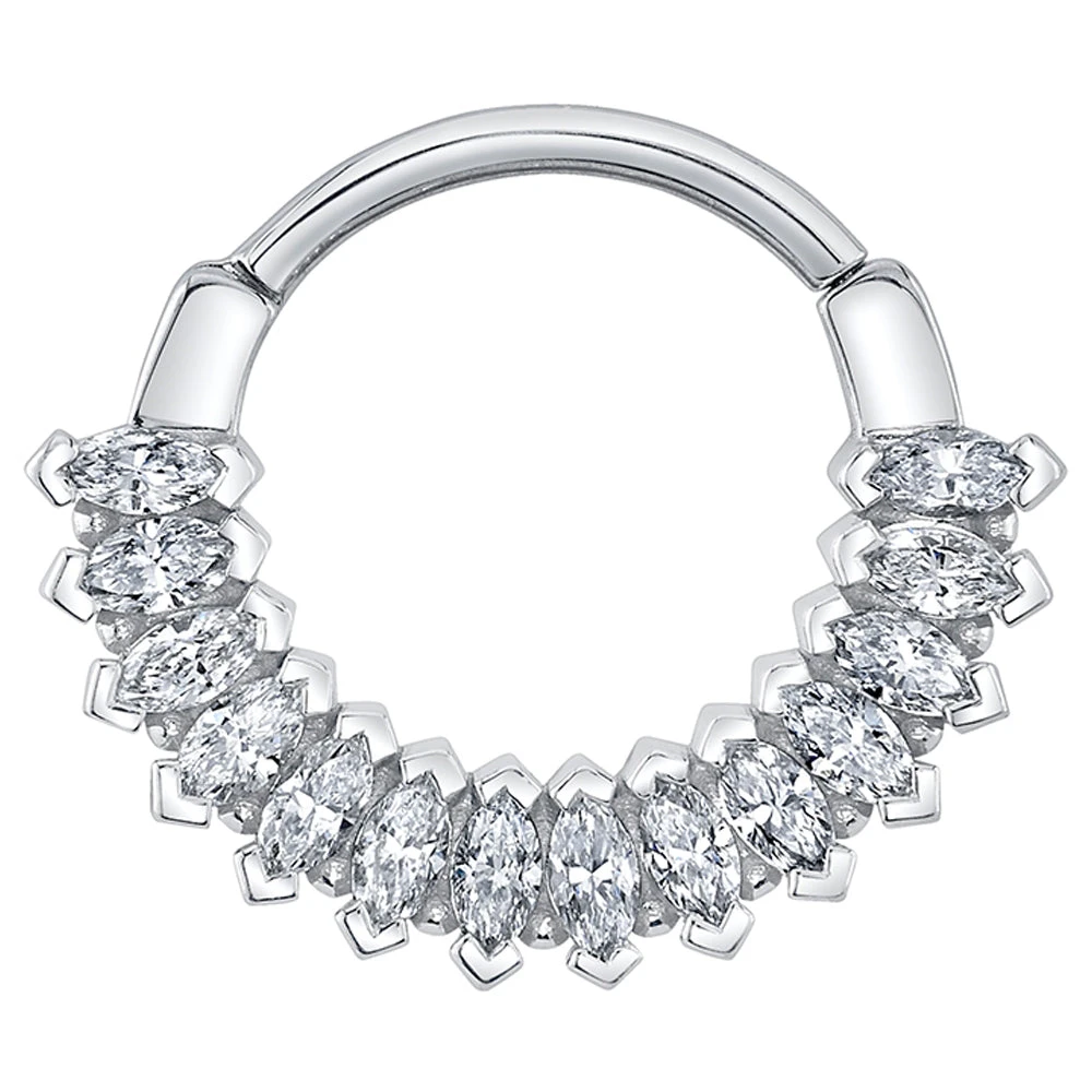 Let the “Sweet Dreams” whisk you away. Indulge in a dreamy escape with this hinge ring adorned with sparkling marquise Diamonds.