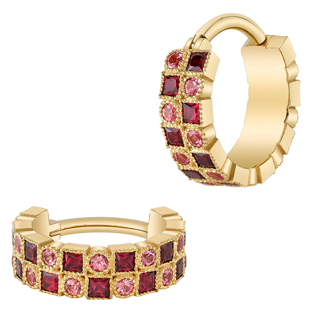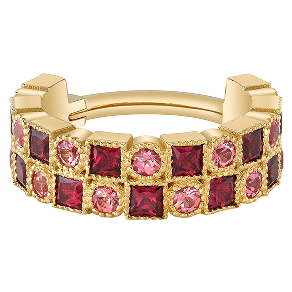 - Material(s): 14K Gold, Chatham Lab Created Padparadscha Sapphire, Red Spinel
