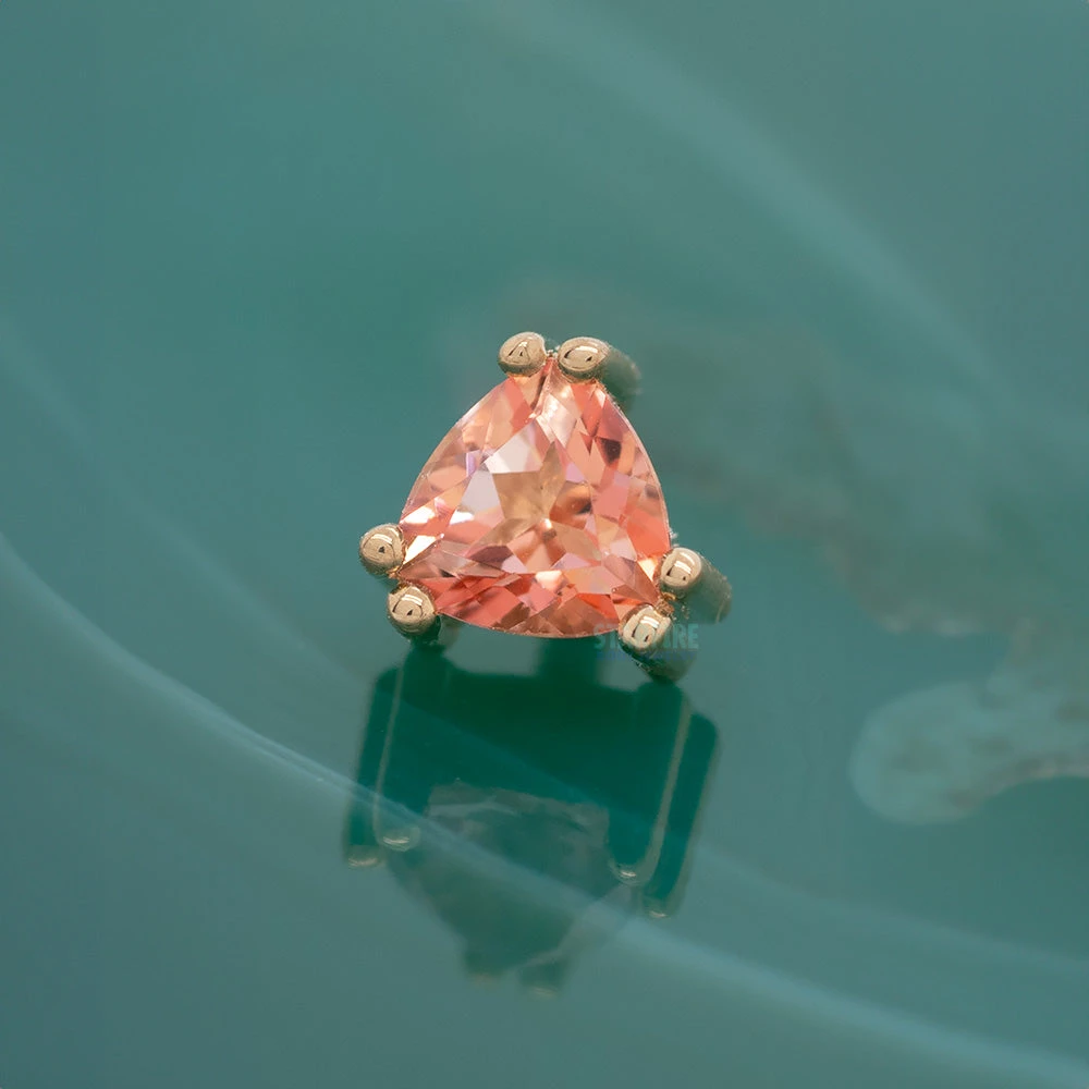 - 3mm Trillion Cut Peach Topaz in Double Prong setting