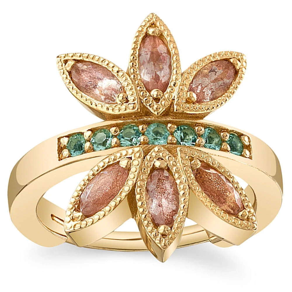- Material(s): 14K Gold, Oregon Sunstone, Mint Beryl