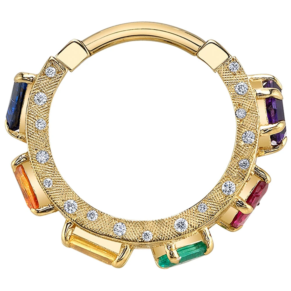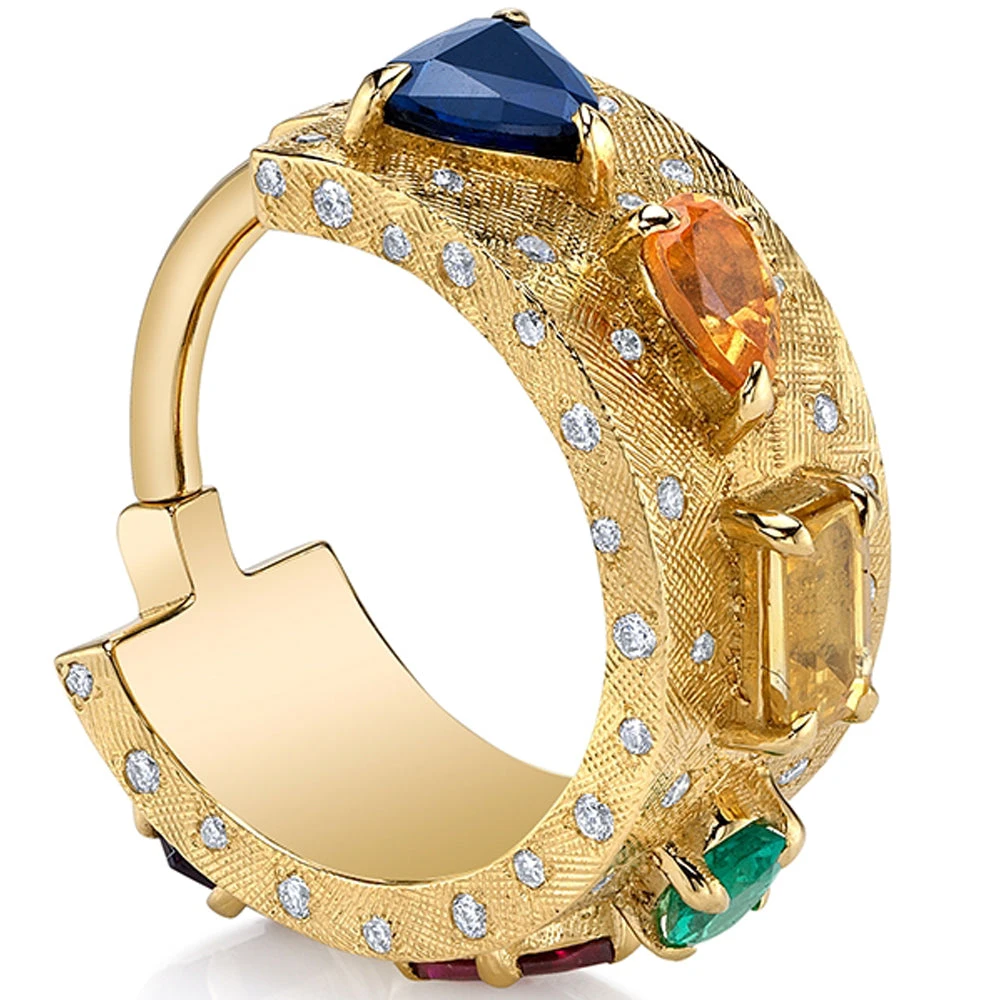 - Material(s): 14K Gold, Yellow Sapphire, Ruby A, Blue Sapphire A, Amethyst, Emerald, Spessartite, Genuine White Diamonds