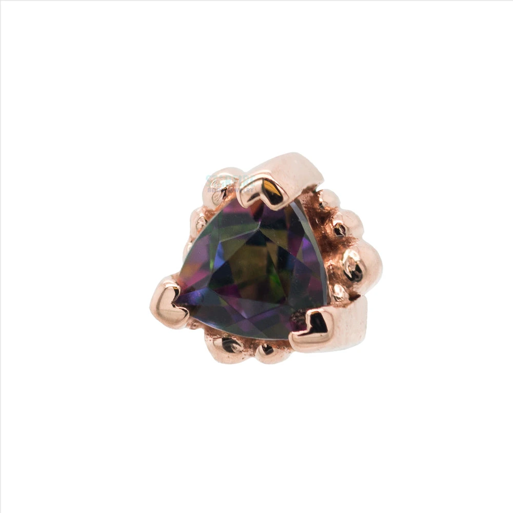 - 4.5mm threadless end with (1) 3mm Trillion Cut Mystic Topaz in Prong’s surrounded by tiny graduating bead accents