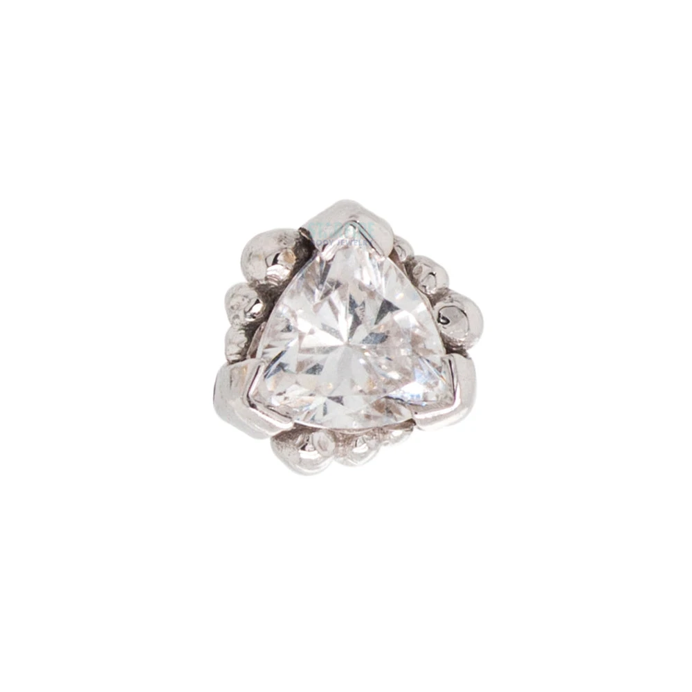 - 4.5mm threadless end with (1) 3mm Trillion Cut White CZ in Prong’s surrounded by tiny graduating bead accents