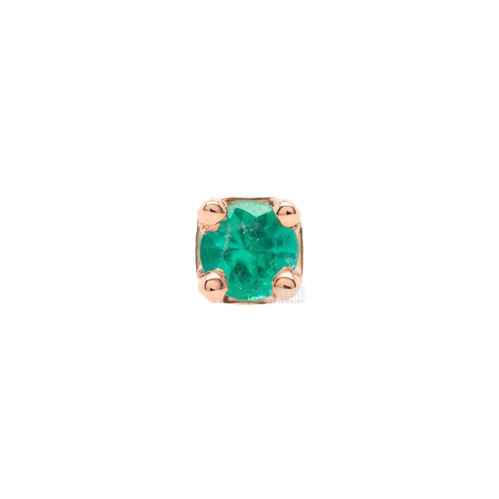 - threadless end with (1) 3mm Round Faceted Genuine Emerald in 4 Prong’s