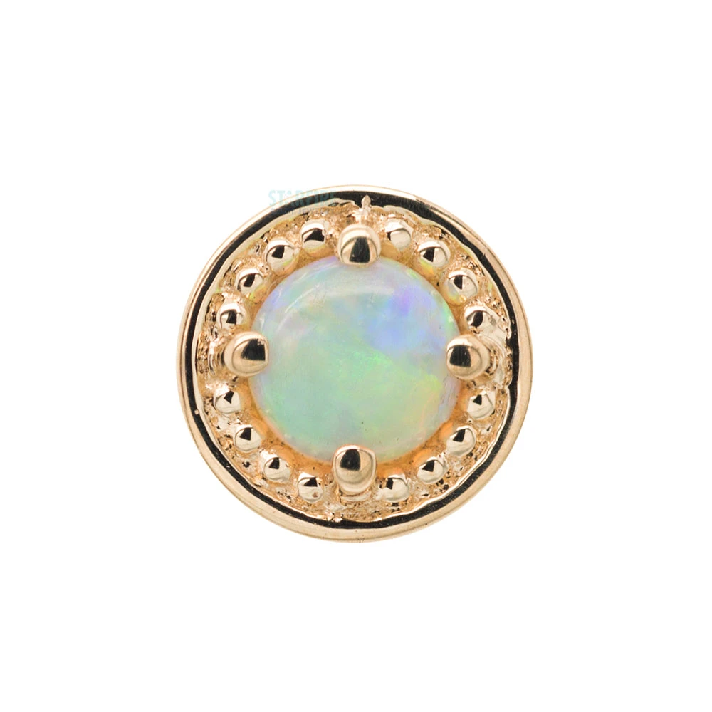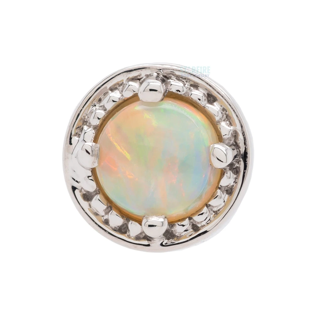 - 5mm threadless end with (1) 3mm Round Genuine Opal AAA in Milgrain Prong’s