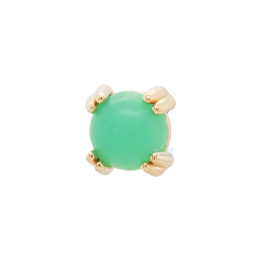 - threadless end with (1) 2.5mm Round Sandblasted Chrysoprase Cabochon in Prong’s