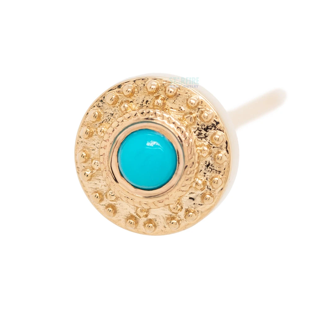 - Tiny: 5mm beaded disc with (1) 2mm Turquoise in center