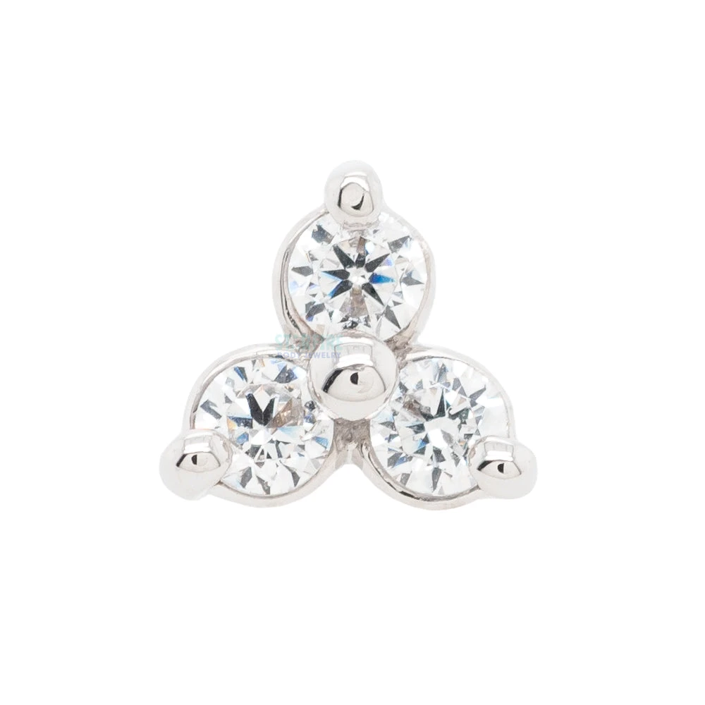 - (3) 1.5mm Round White CZ’s in Prong’s threaded end (3.5mm width)
