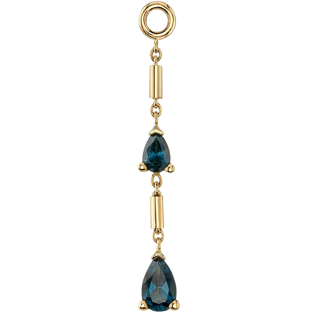 - 3/4″ total length with (1) 3mm x 2mm Pear-cut London Blue Topaz AA & (1) 4mm x 2.5mm Pear-cut London Blue Topaz AA in Prong’s on Ophelia Chain