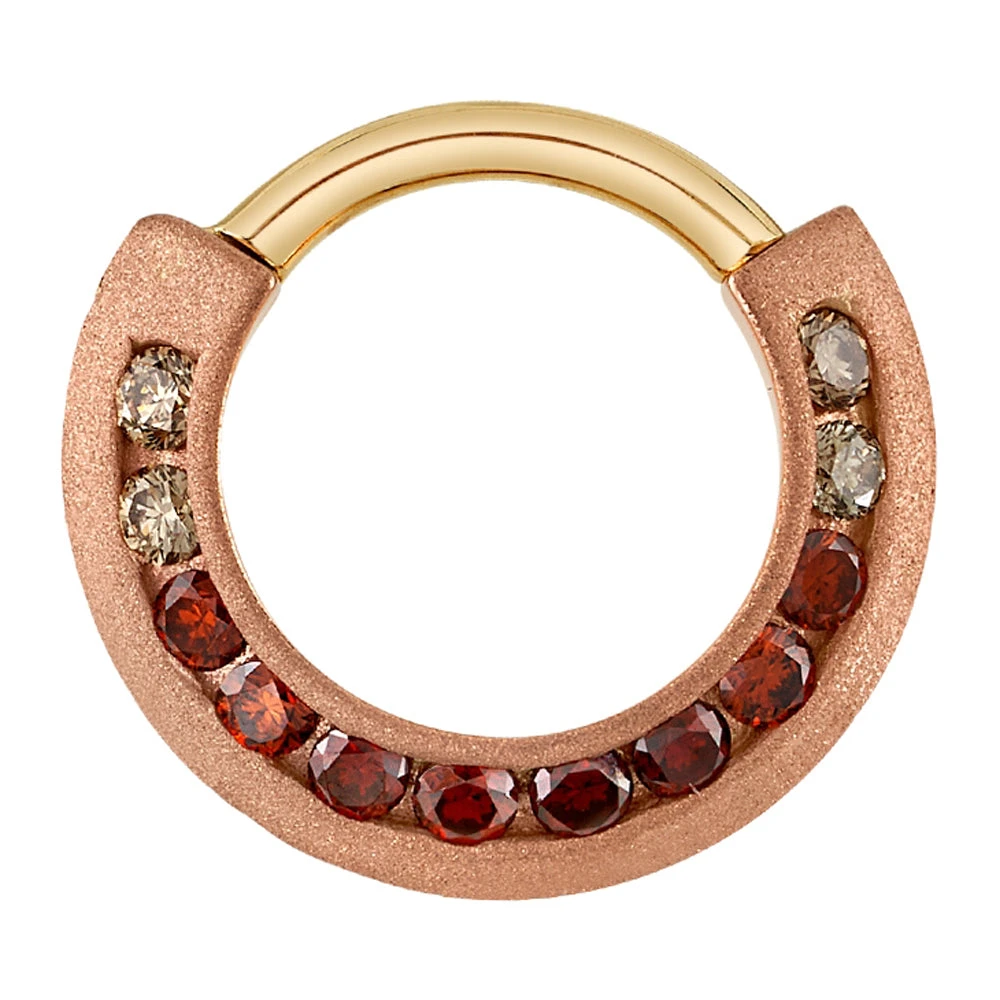 - Material(s): 14K gold, Champagne Sapphire, Champagne Diamond, Orange Cognac Diamond, Red Diamond