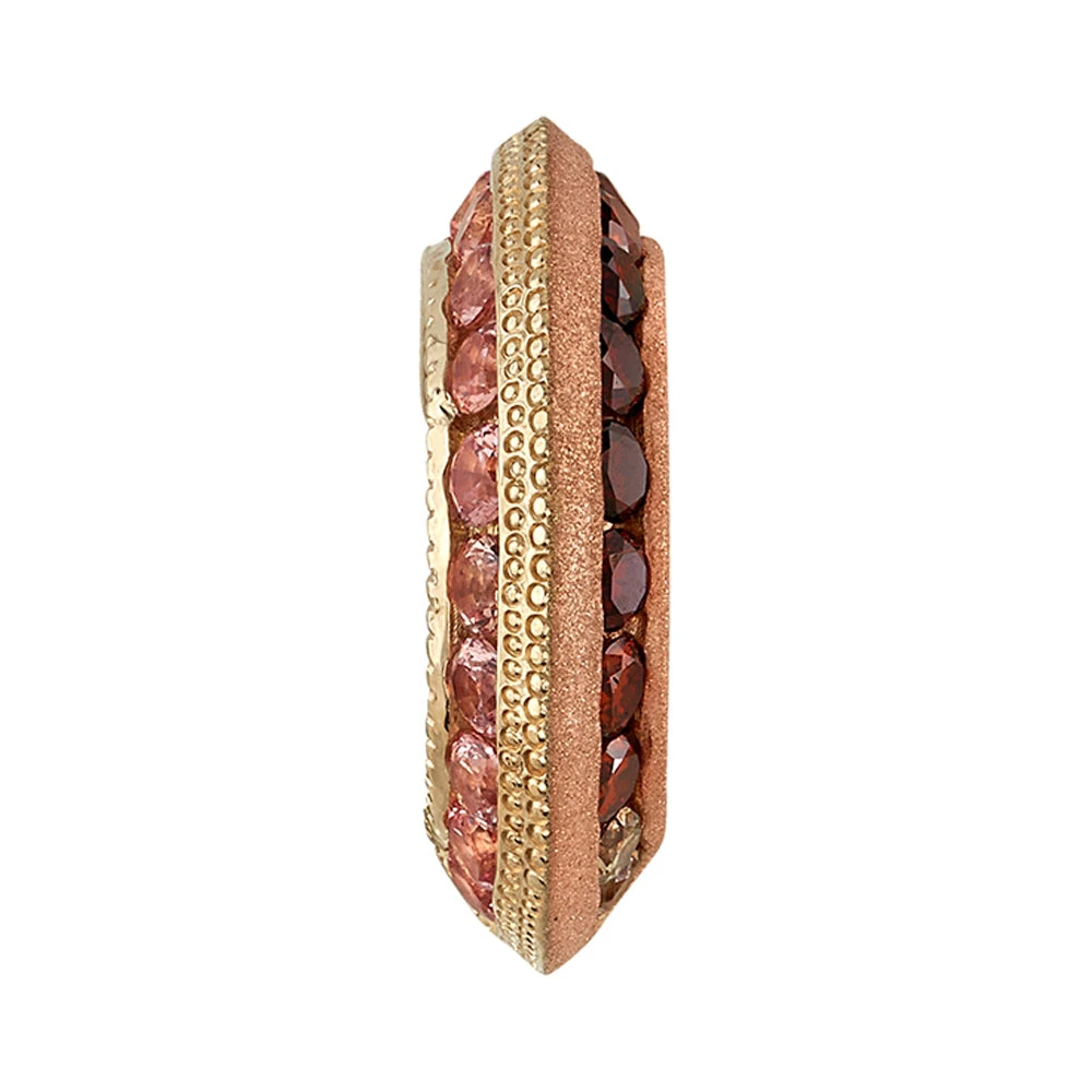 Sport two totally different looks with a single piece, fiery red gems with a sandblasted finish on one side and classy pave texture with champagne sapphires on the other!