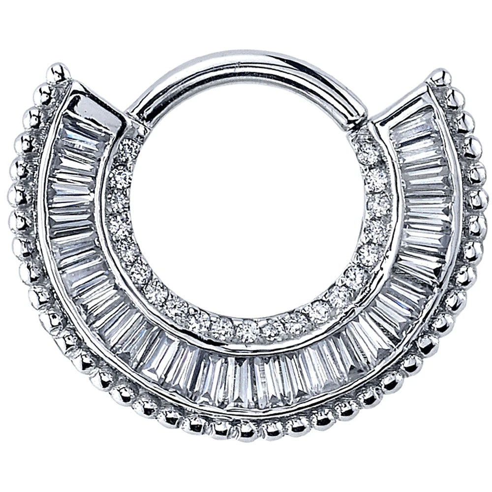 A truly glamorous and timeless piece, this “Wanderlust” Hinge Ring is adorned with magnificent tapered baguettes of sparkling Genuine Diamonds.