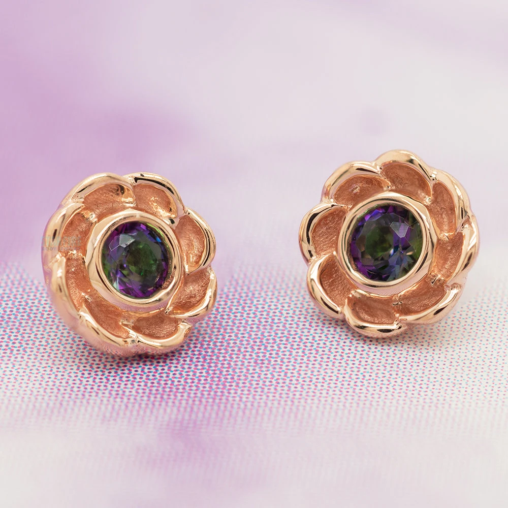 - 5mm flower rounded on the bottom with (1) 2mm Round Mystic Topaz in Bezel